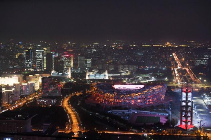 2021年10月28日,作为北京冬奥会和冬残奥会开闭幕式场地的国家体育场“鸟巢”夜景。新华社记者张晨霖摄