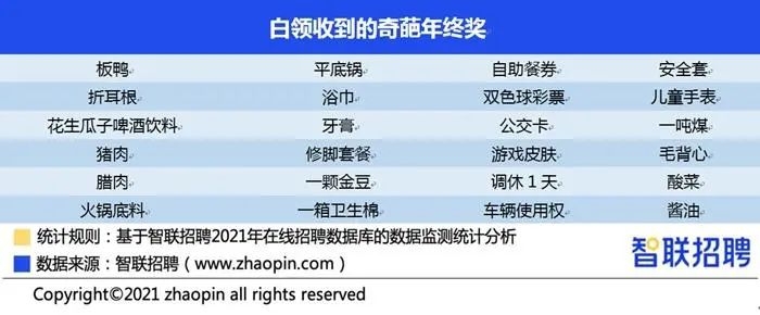 员工收到的奇葩年终奖。图片来源:智联招聘