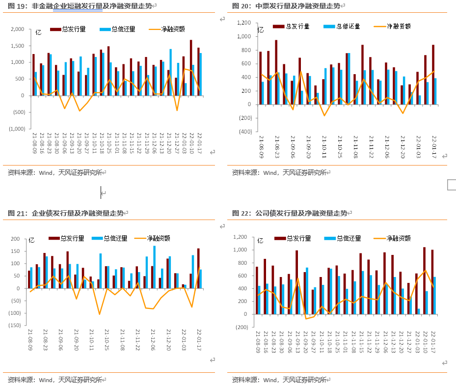 从2021年底市场便有高度关注传交易商协会政策有边际调整:“交易商协会出台新政策,城建类企业发债政策大幅缩紧,所有红色、橙色区域发债客户后期只能借新还旧协会债券,原1234类分类政策取消。以及:1.已经完成发行前用途变更的项目,发行组尚未及时关联新政策,建议发行人尽快发行落地;2.已经获得注册通知书的项目,建议按注册用途尽快发行,不建议再进协会变更;3.通道内注册项目和待注册项目,建议抢先锁定客户1年内到期的协会债用途,各家银行近期应会有所反应。”
