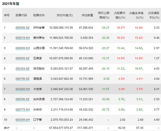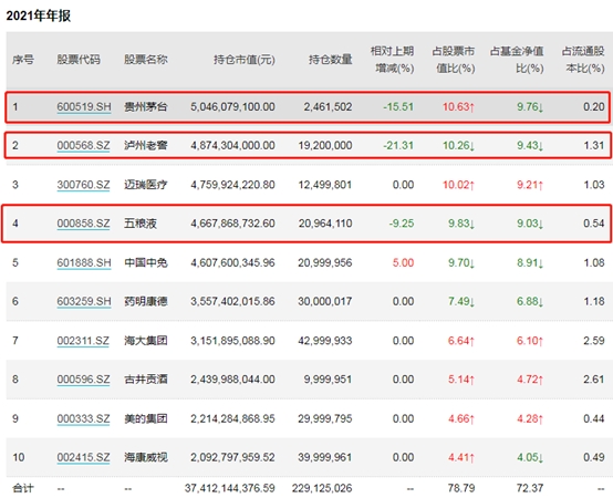 不过,大量减持后,贵州茅台仍是该基金第一大重仓股,四季度末持股市值达50.46亿元,占基金净值的9.76%。