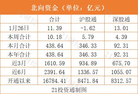 据21投资通(微信号ID:touzit21)智能监测,北向资金全天净买入11.39亿元,内部出现一定的分化,并且尾盘一小时有净流出迹象。具体来看,沪股通净卖出1.62亿元,深股通净买入13.01亿元。