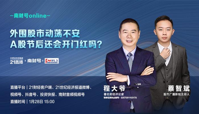 1月28日15:00,南财号online邀请到著名财经评论家程大爷来到我们节目,跟我们共同探讨目前环境下的操作策略。