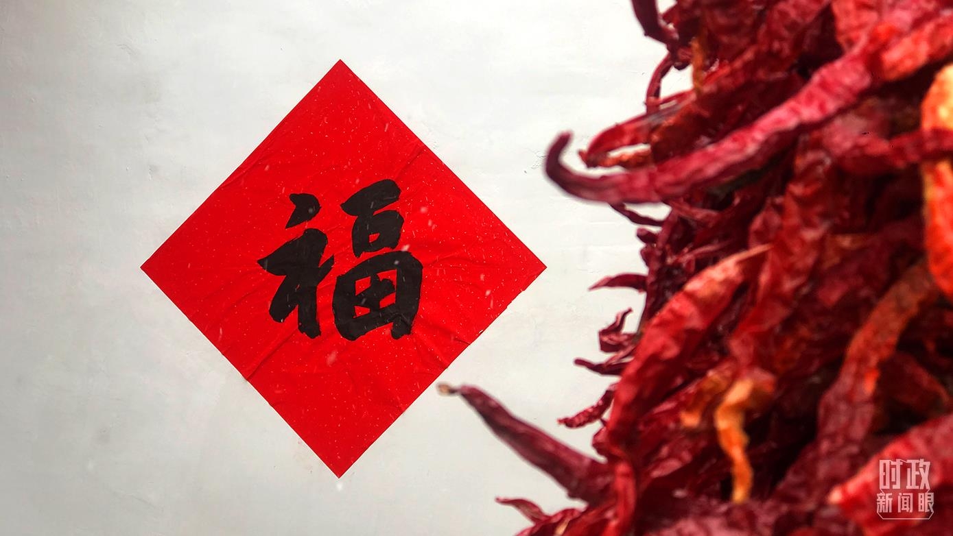 △村民院中晾晒的红辣椒与福字相映成趣。(总台央视记者石伟明拍摄)