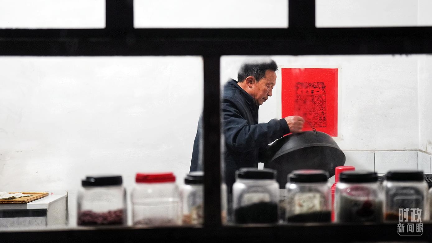 蔡文明的儿子蔡金在江苏的一家电子厂务工,去年收入2万元。春节将至,蔡金早早回家团聚,看望10个月大的女儿。一家人贴福字、炖排骨、蒸花馍,在熟悉的仪式感中,品味着浓浓的年味,感受着满满的幸福。