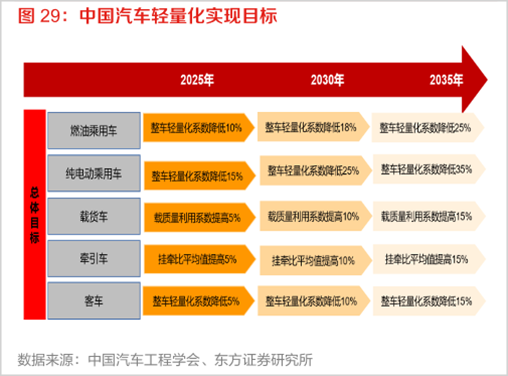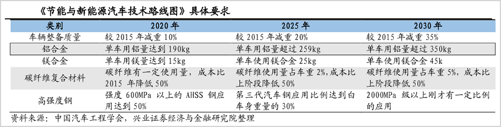 国家政策层面已经开始着重发力,国务院印发的《中国制造2025》中就指出,轻量化技术是汽车的重点突破方向。