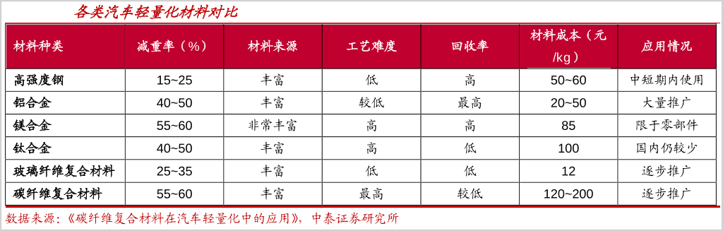 与传统车用金属相比,碳纤维复合材料拥有低密度、高强度、可设计性及耐腐蚀性,堪称汽车轻量化“最为理想”的材料。