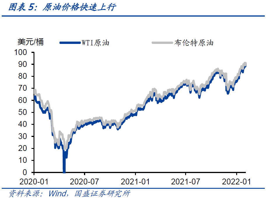 联储将加速收紧货币政策。在1月26日的美联储议息会议上,鲍威尔的讲话释放出鹰派的信号,他并未否认每次议息会议均加息的可能性,并且表示缩表的节奏可能比上次更快。在美国通胀高悬的压力下,联储将加速收紧货币政策。3月联储加息是大概率事件,分歧在于年内加息的次数,当前市场隐含联储将在22年加息5次,每次25bp。联储缩表将从减少到期债券再投资的方式渐进开展,最终将持主要持有国债。我们预计在加息开始后,联储将在2季度给出缩表的计划,正式缩表可能下半年开启。后续重点关注美国通胀和经济走势,这会影响后续联储实际收紧货币政策的节奏,当前的预期引导并非固定不变。