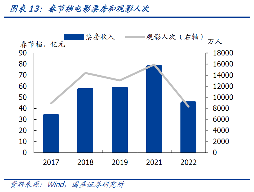 春节票房预计难以超过去年,出游人次恢复至疫情前7成左右。根据猫眼的统计,截止2月4日21时30分,2022春节档总票房(含预售)破45.2亿,档期观影人次8321.5万。去年就地过年催生了观影的热情,去年春节档观影人次达到了1.6亿。今年春节档还剩下两天,预计票房收入难以达到21年春节档78亿的水平,我们预计最终票房在65亿元-75亿元之间。根据文旅部统计,春节前3天全国国内旅游出游合计1.37亿人次,按可比口径恢复至2019年春节假日同期的71.5%,实现国内旅游收入1678.5亿元。21年春节旅游人次为2.56亿次(恢复至疫情前的75.3%),旅游收入为3011亿元(恢复至疫情前的58.6%)。结合春节前3天的数据,我们预计今年旅游人次和收入较21年将会有小幅正增长。