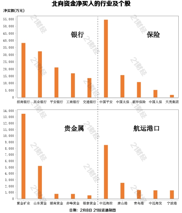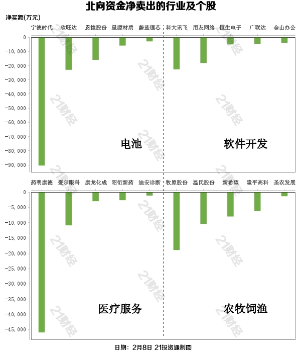 据21投资通(微信号ID:touzit21)智能监测,2月8日,北向资金净卖出8.17亿元,其中沪股通净买入21.13亿元,深股通净卖出29.3亿元。