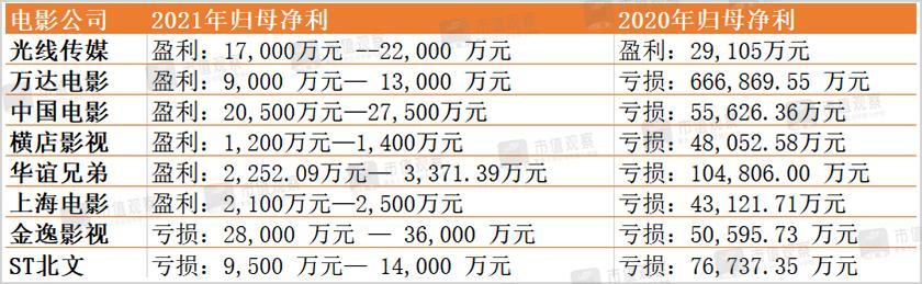 而对于绝大多数电影公司而言,2021年,让其彻底“活”了过来。近期多家上市电影公司发布了“扭亏为盈”的年度业绩预告。