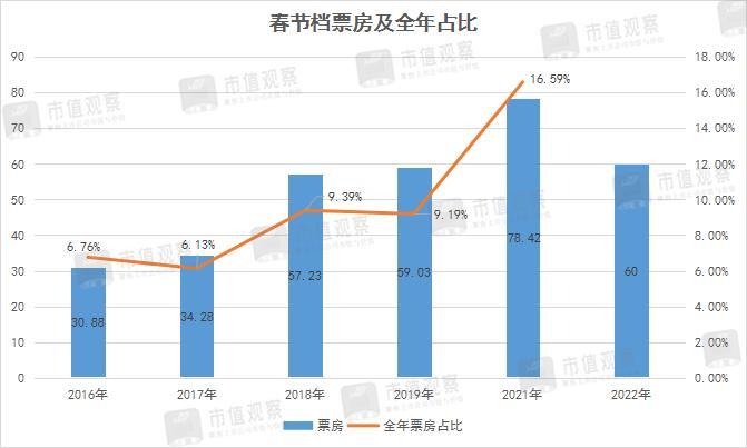 据猫眼统计,2016年-2021年,春节档票房从30.88亿元攀升到78.42亿元,占全年票房的比例也从不到7%来到近17%。春节档的虹吸效应越来越强。