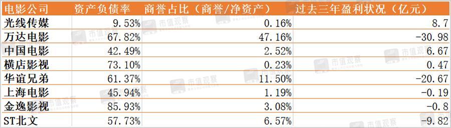 最后看财务基本面。仅从衡量风险的负债情况、商誉占净资产比例及盈利稳定性三个角度看,优秀的电影公司是凤毛麟角的存在。
