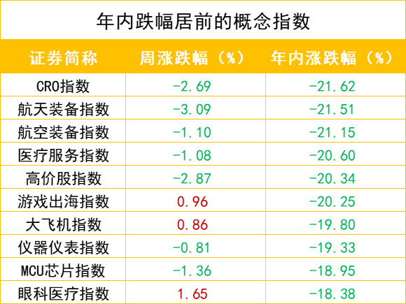 上涨股票以低估值的价值股为主,下跌股票则以高估值的医药、科技股为主,CRO、航天装备、航空装备、医疗服务等概念的年内跌幅均超过20%。