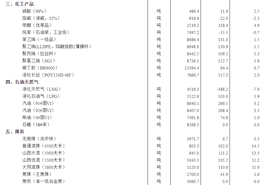其中煤炭、石油、黑色金属的价格涨幅较大,普通混煤的价格较1月中旬上涨了14.5%,部分化工产品的价格也有明显涨幅,甲醇的价格上涨4.9%。
