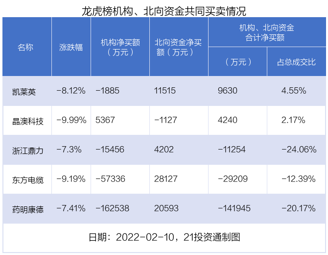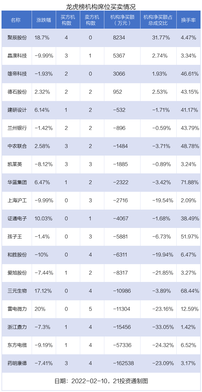 2月10日,19只个股龙虎榜出现了机构的身影,机构合计净卖出27.44亿元。具体来看,机构净买入4股,净卖出15股。