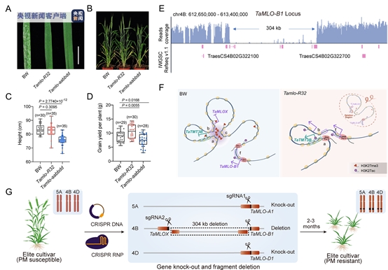 近日,中国科学院科研团队在小麦基因组编辑抗病育种研究中取得新进展,阐明了小麦抗白粉病又高产的分子机制。这一成果10日在国际学术期刊《自然》发表。