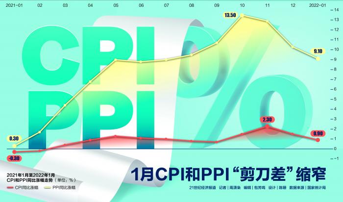 1月PPI同比上涨9.1%,仍处于相对较高的水平,但已经持续三个月保持回落态势。