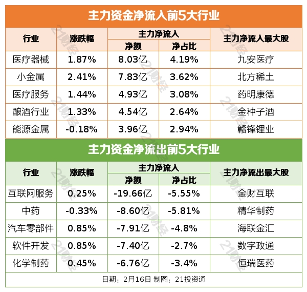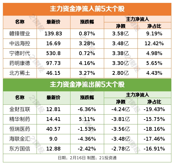 据21投资通(微信号ID:touzit21)智能监测,2月16日,北向资金净卖出16.23亿元,连续3日净卖出,其中沪股通净买入9.51亿元;深股通净卖出25.74亿元,已连续10日净卖出,创开通以来最长连续净卖出。