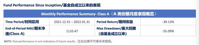 具体来看,在不考虑杠杆因素的情况下,2022年1月总体收益回撤约-7.8%,其中-4.7%来自alpha,-2.1%来自市值敞口暴露,费用和基差(对冲成本)分别贡献-0.5%左右的亏损。叠加杠杆(一月份杠杆维持在 5 倍左右),管理人预估基金回撤为-39.13%。