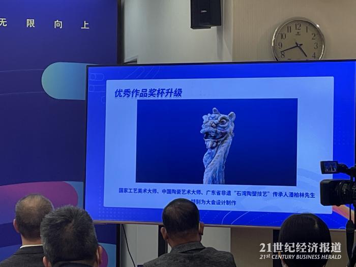 值得关注的是,今年优秀作品的奖杯造型也进行了升级。2020年金南狮网络视听盛典颁发的是一款别具一格的陶瓷纪念杯,由佛山市的国家工艺美术大师、中国陶瓷艺术大师、广东省非遗“石湾陶塑技艺”传承人潘柏林先生特别为大会设计制作。在此基础上,今年潘大师对纪念奖杯做了进一步的艺术加工,造型更加威武灵动。