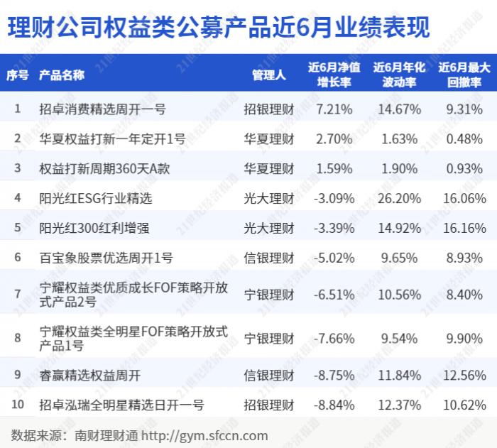 具体到产品表现上看,“招卓消费精选周开一号”蝉联榜首,近6月净值增长率达7.21%,近6月年化波动率为14.67%,近6月最大回撤率为9.31%。