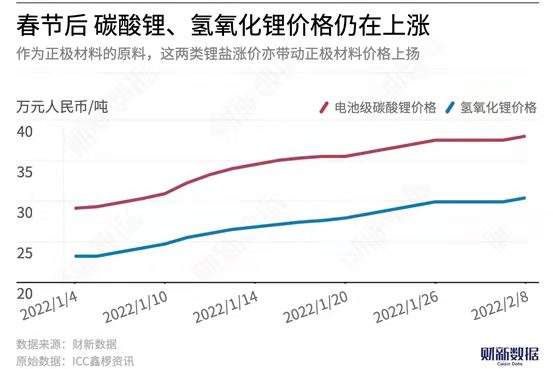 国信证券研报分析碳酸锂涨价原因表示,1月部分碳酸锂生产厂家停产检修,产量缩减,供应紧张局面难缓解。原料端锂矿资源供应仍偏紧俏,且价格居高不下,叠加工艺辅料价格上涨,成本压力持续增加。下游需求旺盛,扩产持续热度不减。短期看,供需两端将进一步支撑碳酸锂价格持续高涨。