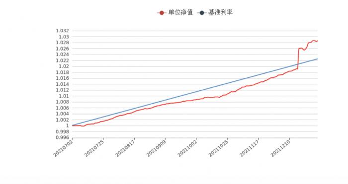 从净值走势来看,该产品12月10日前净值表现平稳,但产品收益持续跑输业绩比较基准利率,12月10日-12月17日期间,产品净值出现跃升,此后大幅跑赢业绩比较基准。课题组猜测,该产品为封闭式产品,无开放期申赎影响,产品净值上涨有可能是因为估值方式切换,也有可能是因为底层资产收益上行,产品业绩还有待持续观察。