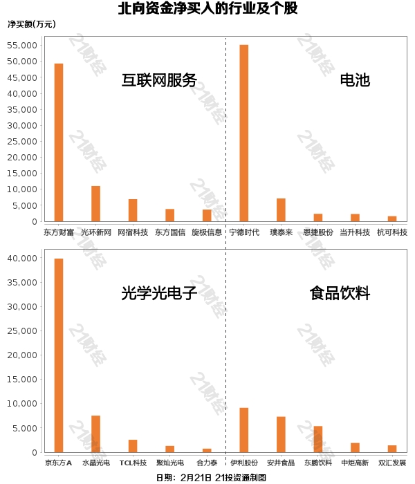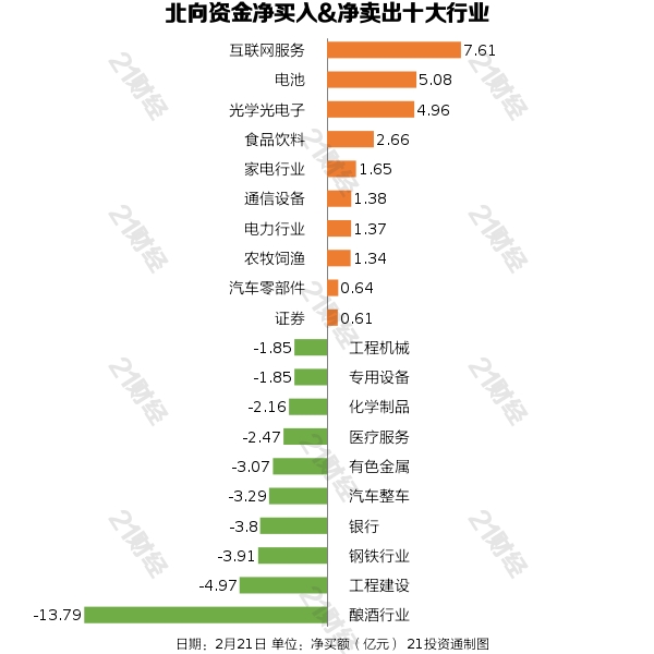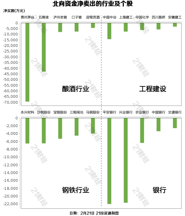 北向资金结束此前两个交易日净买入趋势,再次恢复净卖出。据21投资通(微信号ID:touzit21)智能监测,2月21日,北向资金净卖出35.22亿元,其中沪股通净卖出29.21亿元,深股通净卖出6.01亿元。