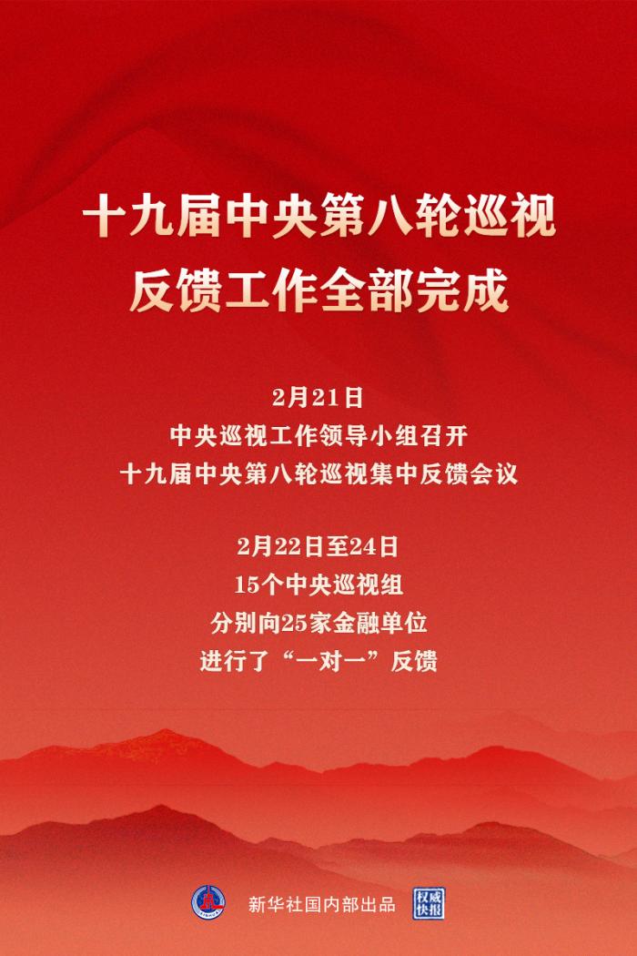 根据党中央部署,十九届中央第八轮巡视向25家金融单位反馈工作近日全部完成。