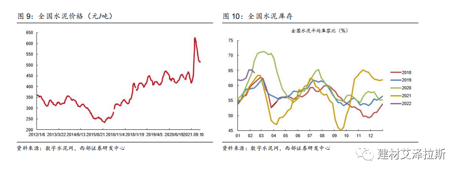 1)水泥:本周全国水泥市场价格515.0元/吨,环比上升0.19%,同比上升14.6%。本周全国水泥库容比64.28%,环比上升0.88个百分点,同比上升9.30个百分点。水泥出货率27.3%,环比上升12.7个百分点,同比下降15.9个百分点。