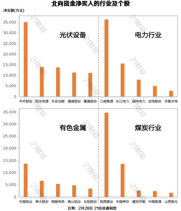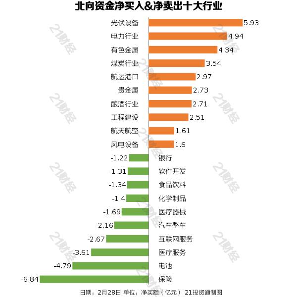 据21投资通(微信号ID:touzit21)智能监测,2月28日,北向资金净买入20.47亿元,其中沪股通净买入17.08亿元,深股通净买入3.39亿元。