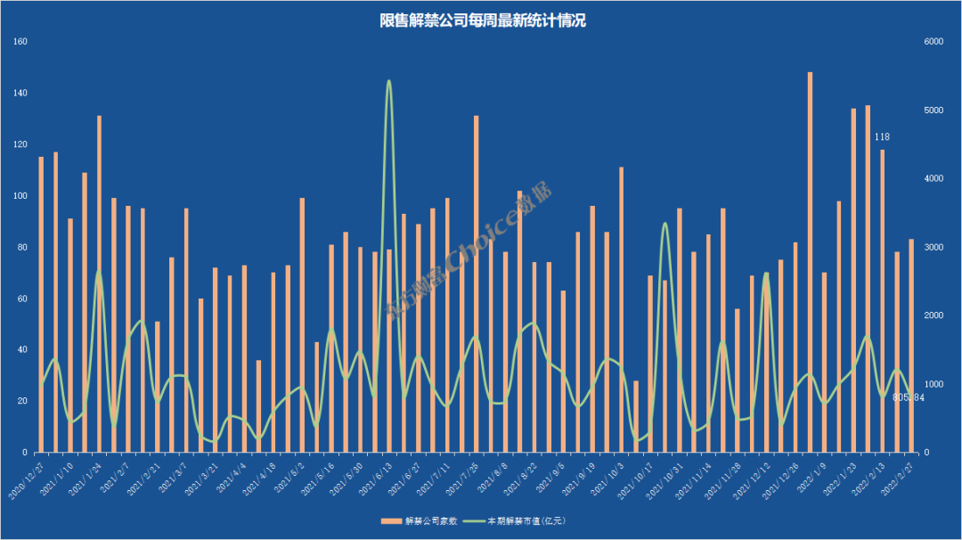 上周,解禁总规模803.19亿元,相比前周减少了409.63亿,解禁公司总数83家。