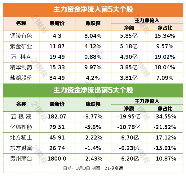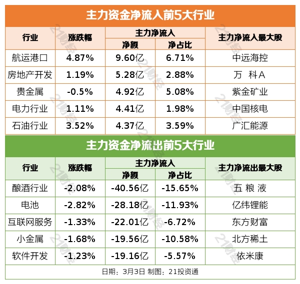 据21投资通(微信号ID:touzit21)智能监测,3月3日,北向资金净卖出7.31亿元,其中沪股通净买入8.0亿元,深股通净卖出15.31亿元。