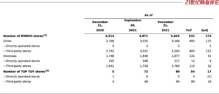 截至2021年底,名创优品进入美国、法国、意大利等100个国家和地区,门店数量增加5045家。KPI只完成了一半。