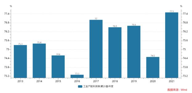 而从2016年开始的供给侧结构性改革,大力压缩过剩产能和地产库存,推动工业企业整体的产能利用率持续回升 ,并在2021年升至2013年以来最高点,房地产库存也显著去化。在经济整体的利用率和周转改善的背景下,经济效益显著改善,从根本上决定了宏观杠杆率具备内生稳定的基础。