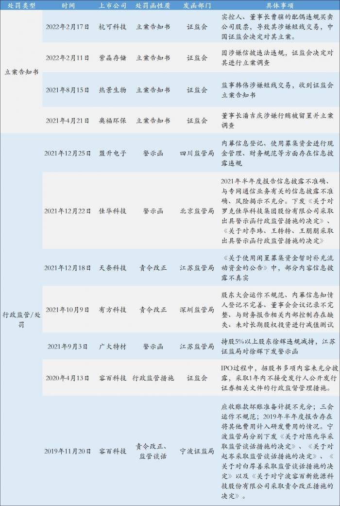 例如7份行政处罚函件中,有6份是关于信息披露不准确导致;4份立案告知书中,有1份是因信披违法违规导致。