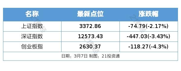 3月7日,A股三大指数单边下行,市场成交额超万亿元。三孩概念逆市走强,数十只个股涨停。