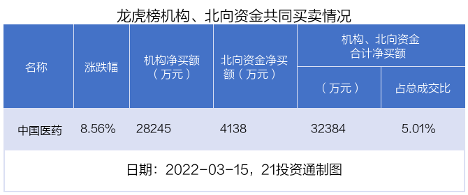 值得注意的是,机构和北向资金共同净买入了中国医药。
