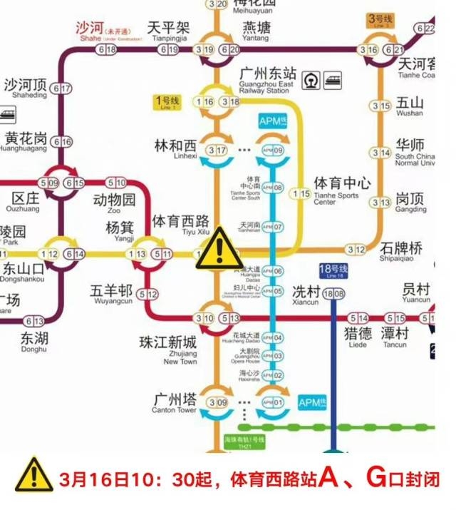 地铁体育西路站A口、G口采取封闭措施,其他出入口正常对外提供服务。
