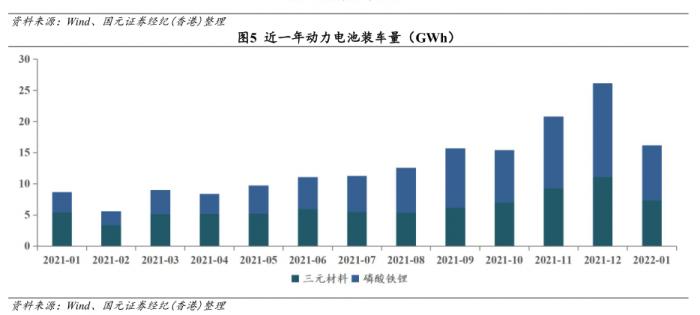 动力电池持续放量,主流向磷酸铁锂电池倾斜。国元证券根据Wind数据统计,磷酸铁锂电池装车量自去年7月起连续7个月超过三元材料电池装车量,产能从去年5月开始就持续向磷酸铁锂电池倾斜,并且从销量端来看,去年四季度磷酸铁锂电池销量占比已达到66%,高出装车量占比约10%。