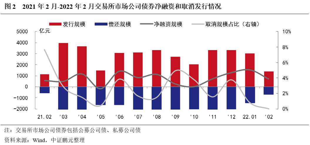 2. 2月份交易所公司债券净融资723.88亿元,环比下降53%