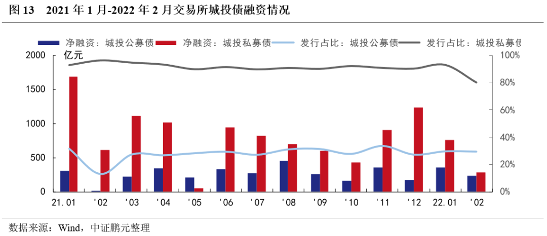 1. 2月份交易所城投债占比下降,私募债城投净融资规模下降