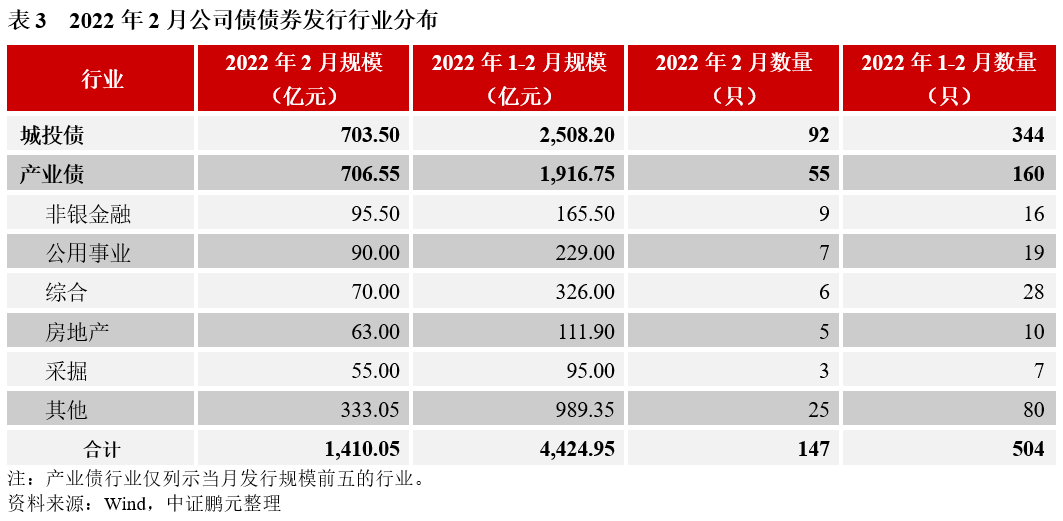 5. 2月份,城投债占比50%,产业债行业以非银金融和公用年事业为主