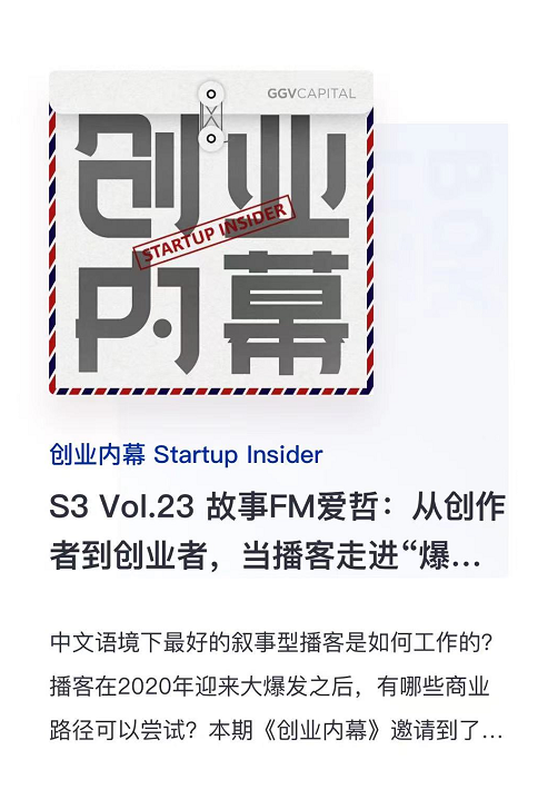 3、《创业内幕》:故事FM爱哲从创作者到创业者 当播客走进“爆发”时代