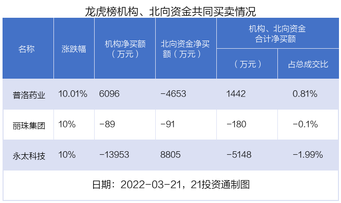 值得注意的是,机构和北向资金共同净卖出了丽珠集团;在永太科技,普洛药业上出现分歧,机构净卖出永太科技1.4亿元,北向资金净买入8804.69万元;机构净买入普洛药业6095.68万元,北向资金净卖出4653.36万元。