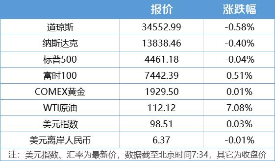 1、美联储主席鲍威尔暗示可能加快加息步伐,美股三大指数集体收跌,道指跌0.58%,纳指跌0.4%,标普500指数跌0.04%。
