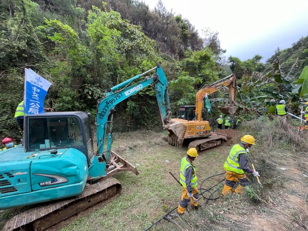 3月22日,在广西藤县埌南镇莫埌村,挖掘机开挖进入东航MU5735客机坠毁事故现场的通道,为后续工作铺平道路(手机照片)。新华社记者 周华 摄