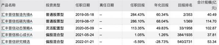 陆彬是偏成长风格,其代表基金汇丰晋信低碳先锋。这只基金134.41%的收益在2020年获得股票型基金冠军,2021年收益42.15%,今年以来收益-12.87%。