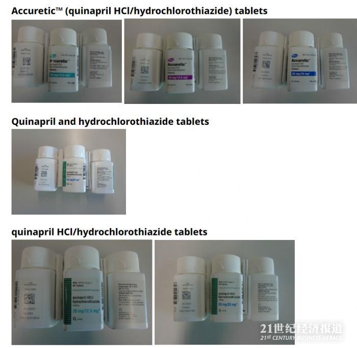 21世纪经济报道记者 朱萍 实习生 王馨漪 徐茂楠 孙厚铭 北京报道 近日,全球制药巨头辉瑞在官网宣布,自愿在全美范围召回一款流行降压药产品,原因是这些药品中的亚硝胺含量高于人体可接受水平,可能导致癌症。这款降压药叫Accuretic和两种仿制药。Accuretic中文名称叫盐酸喹那普利和氢氯噻嗪片,辉瑞公司认为,这种药物成分含有亚硝胺物质,人体长期摄入亚硝胺可能会增加人类癌症的风险。
