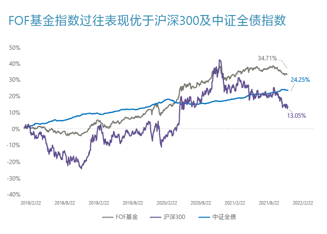 万得数据显示,FOF基金指数长期表现亮眼,不仅收益跑赢沪深300及中证全债指数,整体波动也相对较小。在今年以来这波剧烈的震荡中,其回调幅度显著低于沪深300指数。